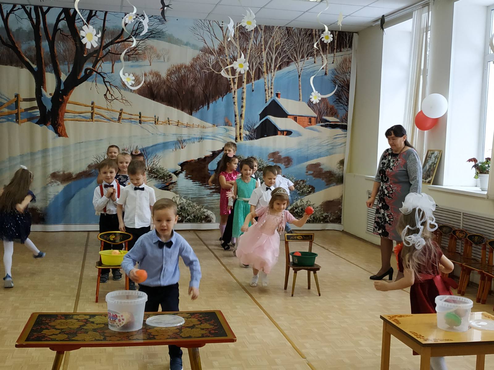 3 и 4 марта в нашем саду традиционно прошли праздники, посвященные Международному женскому дню. В гости к детям пришла вредная Шапокляк и похитила Цветик-семицветик. Дети читали стихи с поздравлением, пели песни, играли в игры, разыгрывали сценки. Праздник Шапокляк понравился, она вернула волшебный цветок и обещала больше не вредничать.